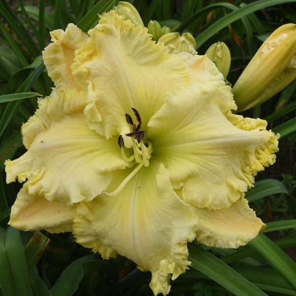 Tet, 7.25" near white self, GT, ruffled edge, EV, buds=30